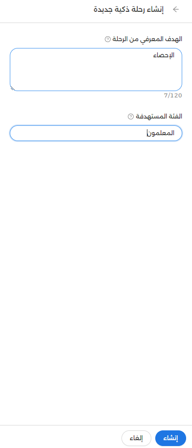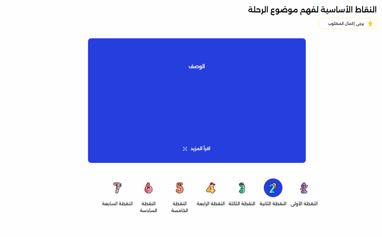 انشيء رحلتك التعليمية في ثوانٍ بالاستعانة بالذكاء الاصطناعي، ما عليك سوى إدخال الهدف المعرفي من رحلتك وتوضيح الفئة المستهدفة من تلك الرحلة، واستمتع برحلة تعليمية عنوانها جاهز، غلافها جاهز، التقييم القبلي والبعدي بها جاهز، وعدة مكونات تفاعلية أخرى جاهزة 🪄
