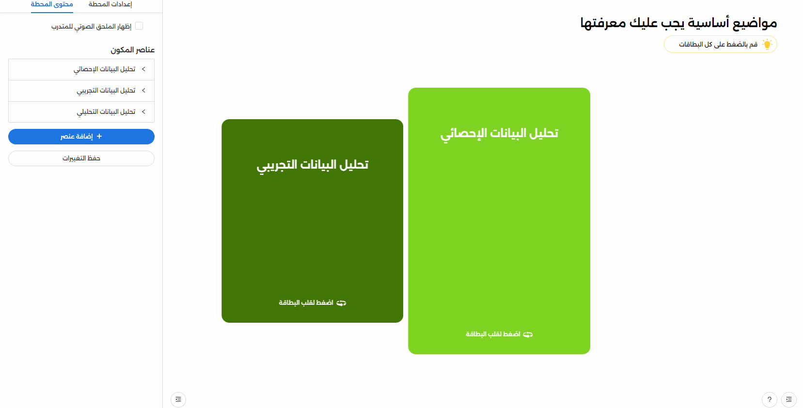 مهما كان المحتوى التعليمي داخل تلك المحطة كبير، سيستوعب مكون البطاقات المرتبة هذا الحجم.