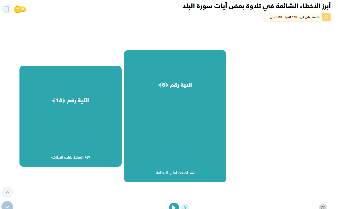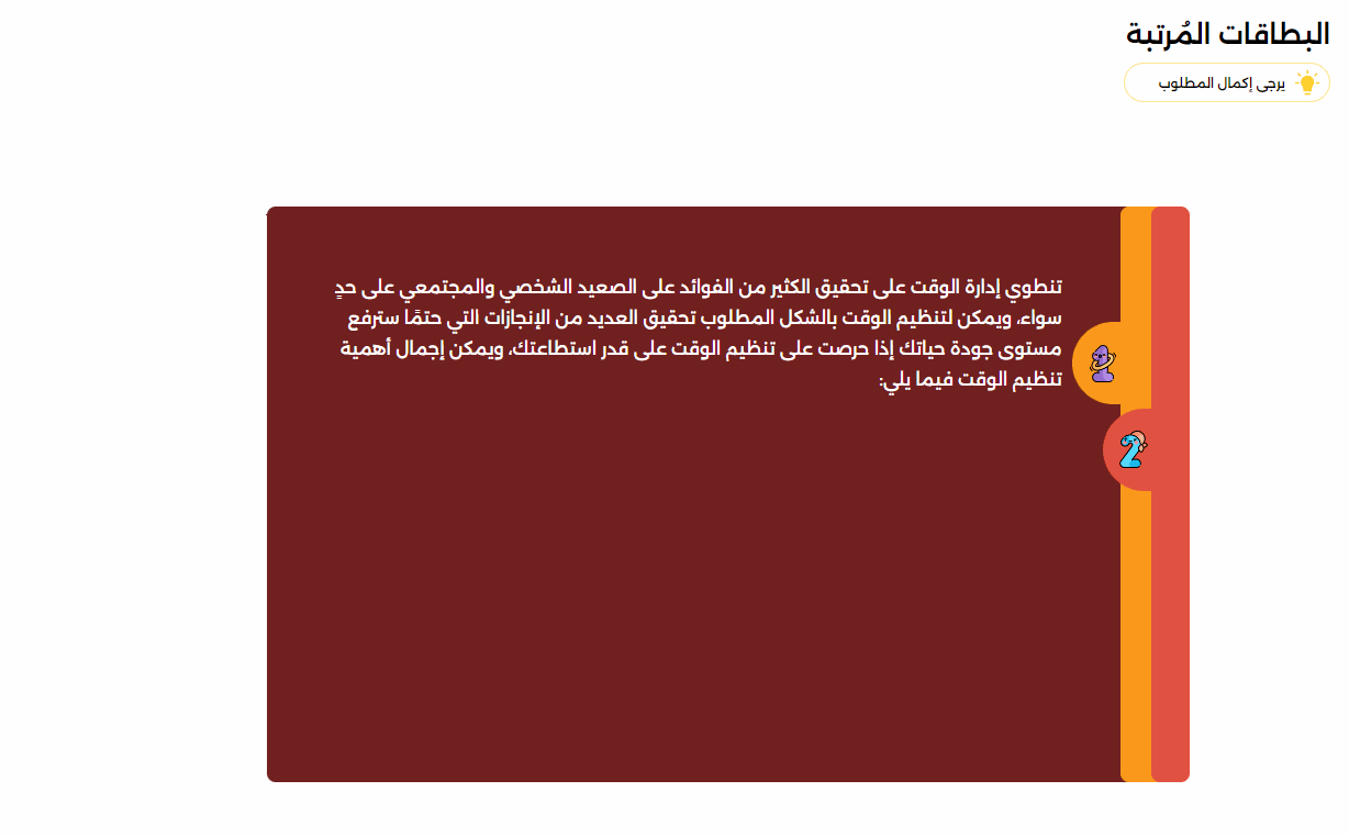 تتيح لك البطاقات استعراض المعلومة بشكل جزئي في وجه البطاقة الأول ثم يتفاعل المتدرب مع البطاقة لتنقلب على الوجه الآخر ويرى الجزء الآخر من المحتوى المُراد إيصاله