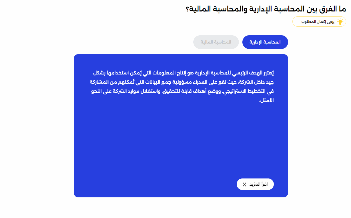 يمكنك من خلال هذا المكون تضمين عدة بطاقات تحمل عناوين بها محتوى مستفيض من أنماط بيانات مختلفة (نصوص + صور ) مع إمكانية تقسيم المحتوى إلى جزئين، جزء ظاهري ابتدائي وجزء استئنافي مستفيض عند الضغط على الزر ليتم فتح نافذة المحتوى التابع للبطاقة دون التقيد بعدد أحرف محدد